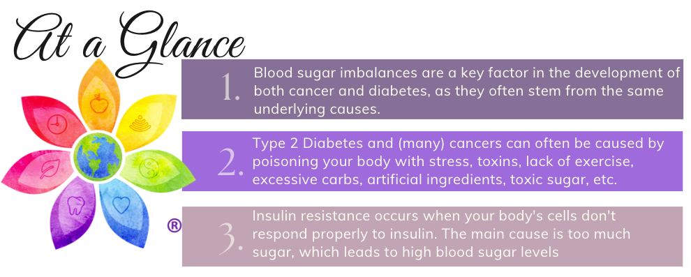 The connection between blood sugar and cancer is real. Blood sugar imbalances are a key factor in the development of both cancer and diabetes, as they often stem from the same underlying causes. Think about it this way: diseases occur when your body is not at ease, it’s in dis-ease. Our bodies are designed to be functional and healthy, but our world (GMOs and other toxins in food, lack of exercise and sunlight, stress and bad sleep, etc.) can drive our bodies to dis-ease.