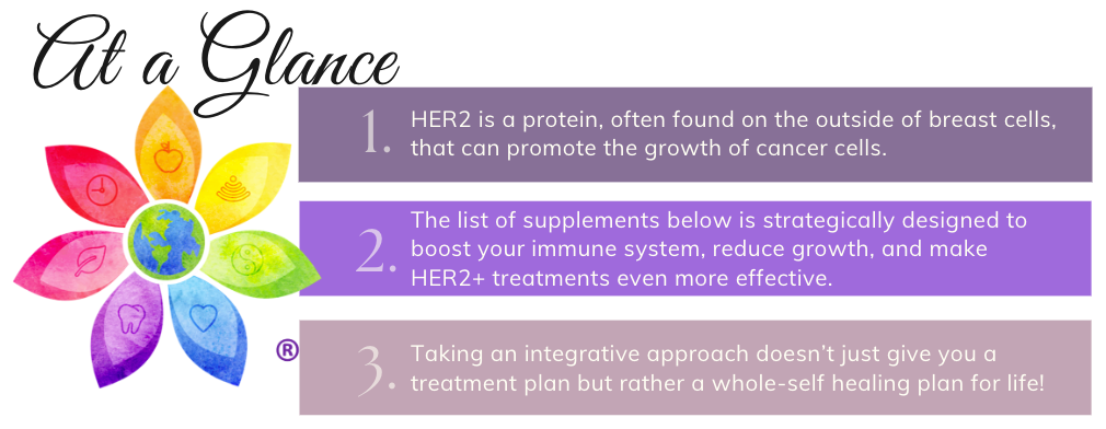 However, for some women who have breast cancer, genes associated with an excessive expression of HER2 proteins are altered, releasing high levels of HER2 protein. This can result in cancer cells dividing and rapidly multiplying. There are several effective treatments that you can discuss with your medical team, and below are supplements that may directly combat HER2 growth.