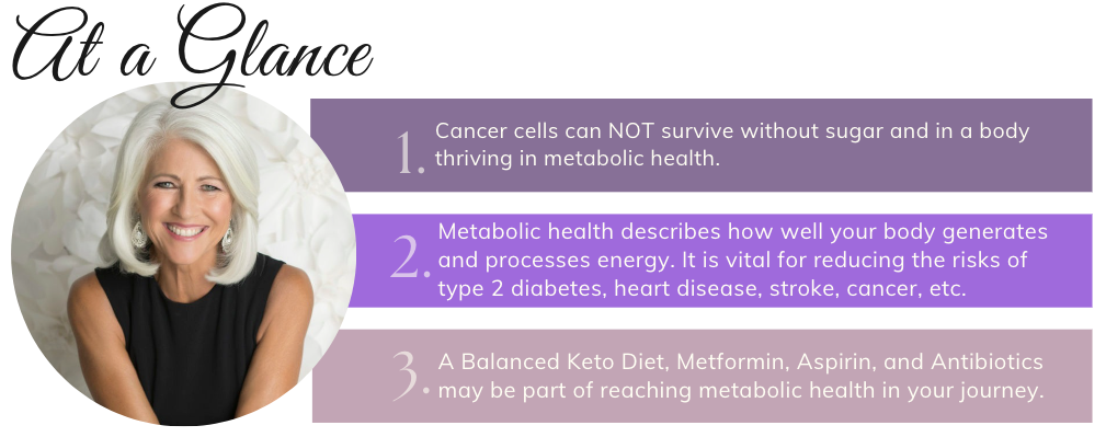 In complex terms, the definition of the metabolic theory is: The metabolic dysregulation of cancer cells leads to upregulation or suppression of genes regulating metabolism in order to remain viable and proliferate. In more understandable terms, cancer cells flourish on sugar and a body that is not in a healthy metabolic state. The opposite is true: cancer cells can NOT survive without sugar and in a body thriving in metabolic health. The good news is that YOU control your sugar intake and have access to lifestyle changes and medicine that can launch your body into a healthy metabolic state.