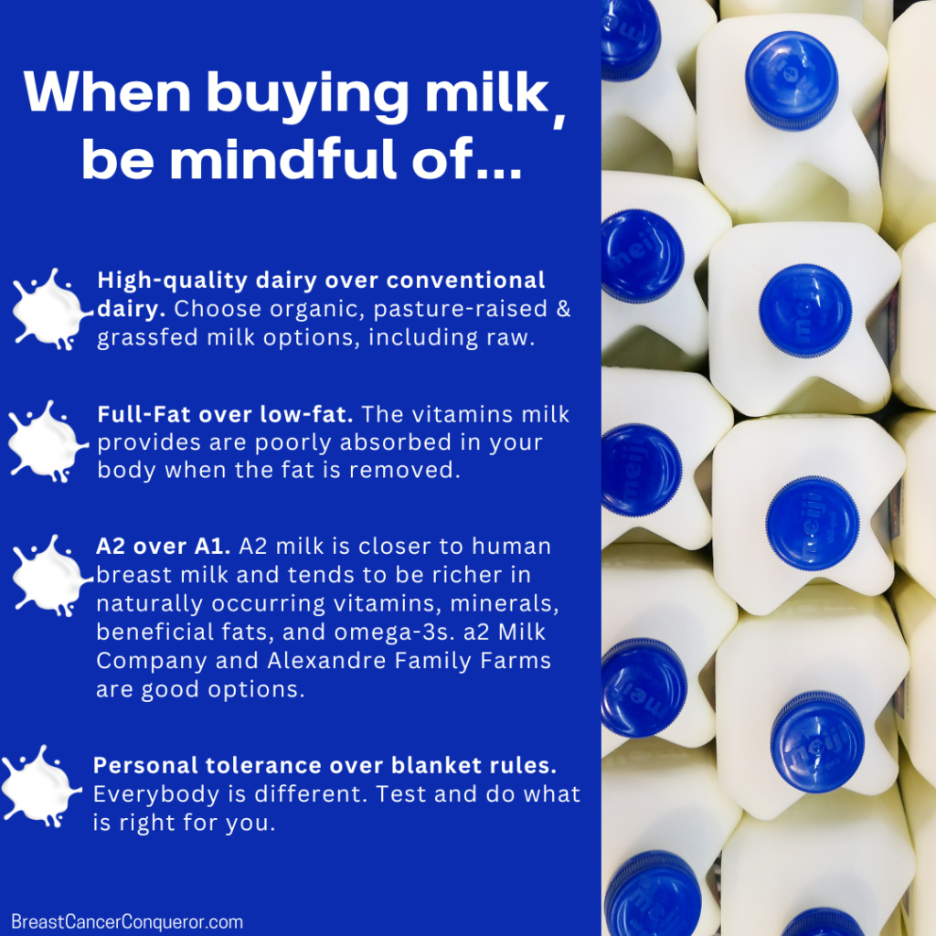 Dairy is one of the most misunderstood and unfairly blamed topics in the modern nutrition conversation, especially when it comes to breast cancer healing. Somewhere along the way, milk became a single villainized category, rather than what it actually is: a spectrum of foods ranging from highly processed chemical cocktails to deeply nourishing traditional foods.