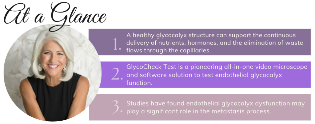 A healthy glycocalyx structure can support the continuous delivery of nutrients, hormones, and the elimination of waste flows through the capillaries. However, a weak glycocalyx does the opposite—weakens nutrient absorption, offsets hormones, and clogs your body with toxins. All of which can be part of how cancer develops in the body.